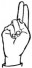 На ћирилици написано ТОДОРА ШКРЕБИЋ састоји се из 13 слова [?]. Исписано ћириличном једноручном азбуком за глувонеме: